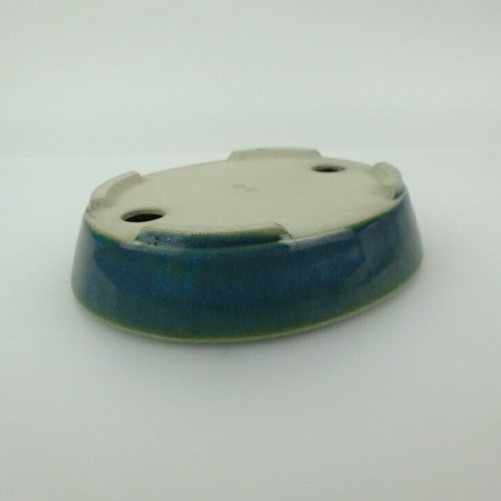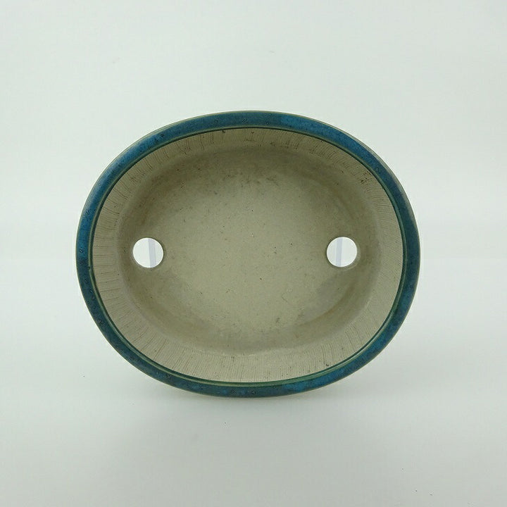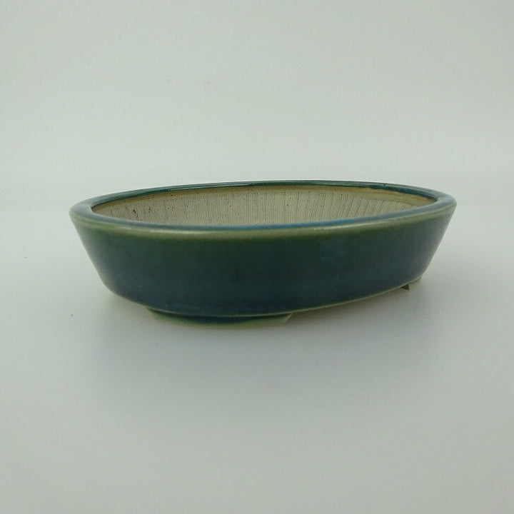 盆栽鉢 青香 小型 長辺 約11.8cm 楕円鉢 釉薬 v1198435388