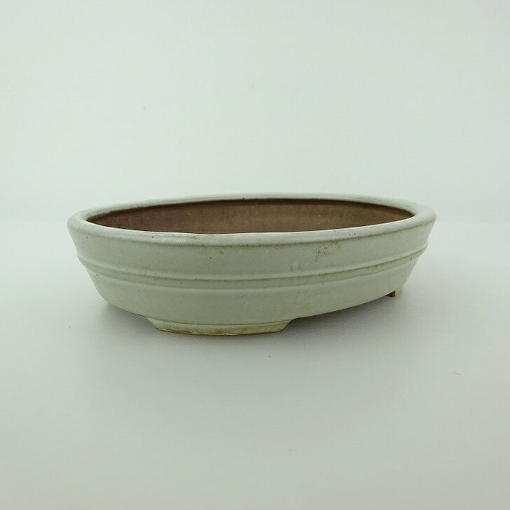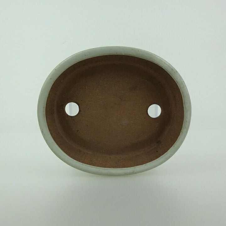 盆栽鉢 青香 小型 長辺 約11.9cm 楕円鉢 中帯 釉薬 c1200268045