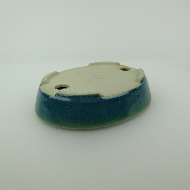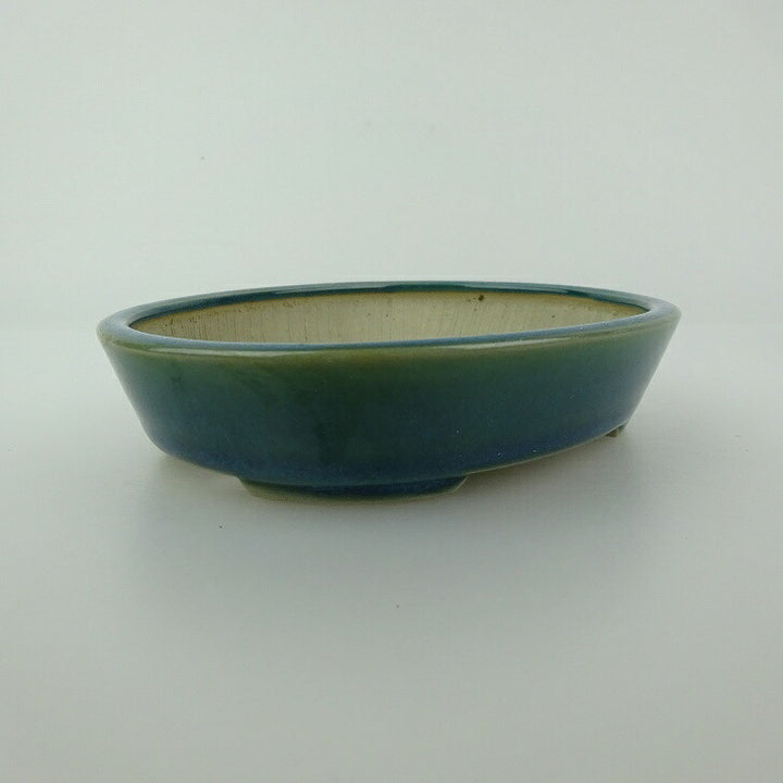 盆栽鉢 青香 小型 長辺 約12cm 楕円鉢 釉薬 u1200175604