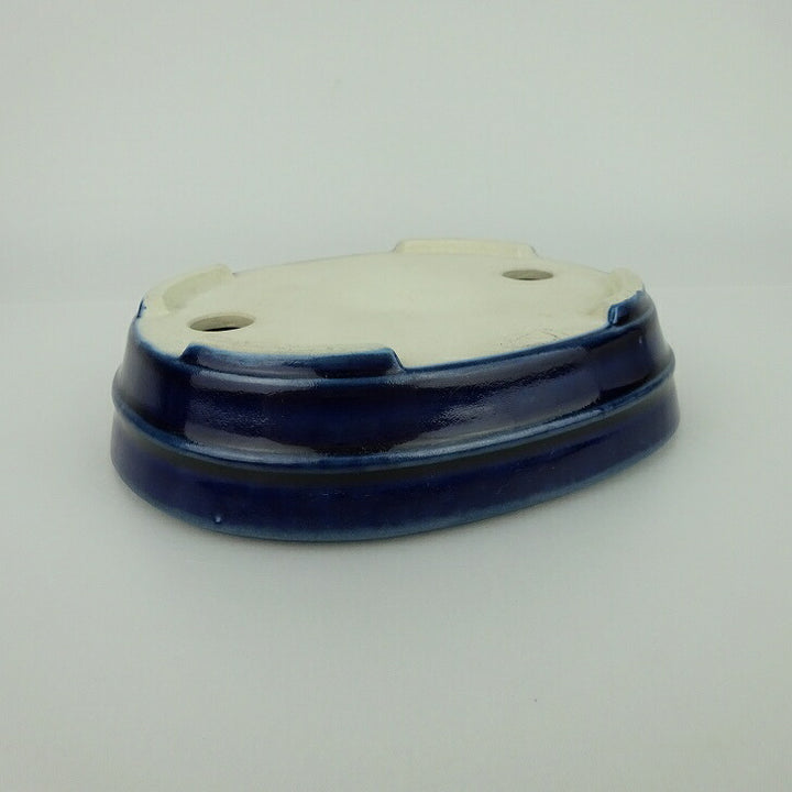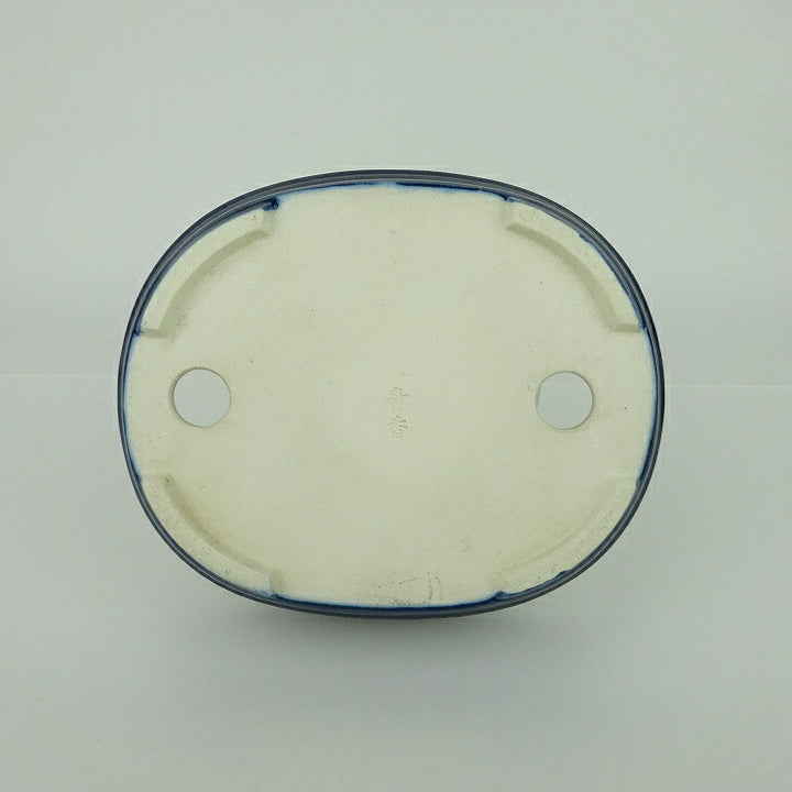 盆栽鉢 青香 小型 長辺 約14.8cm 楕円鉢 中帯 釉薬 l1198405345