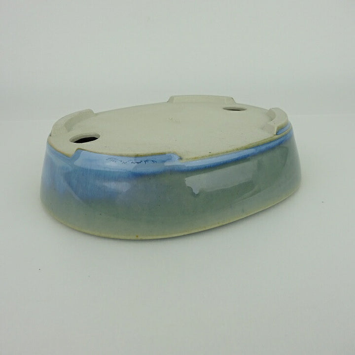 盆栽鉢 青香 小型 長辺 約14.8cm 楕円鉢 釉薬 h1198427316