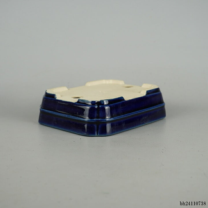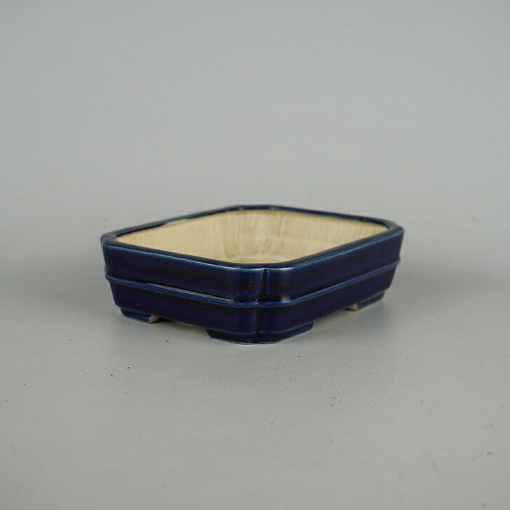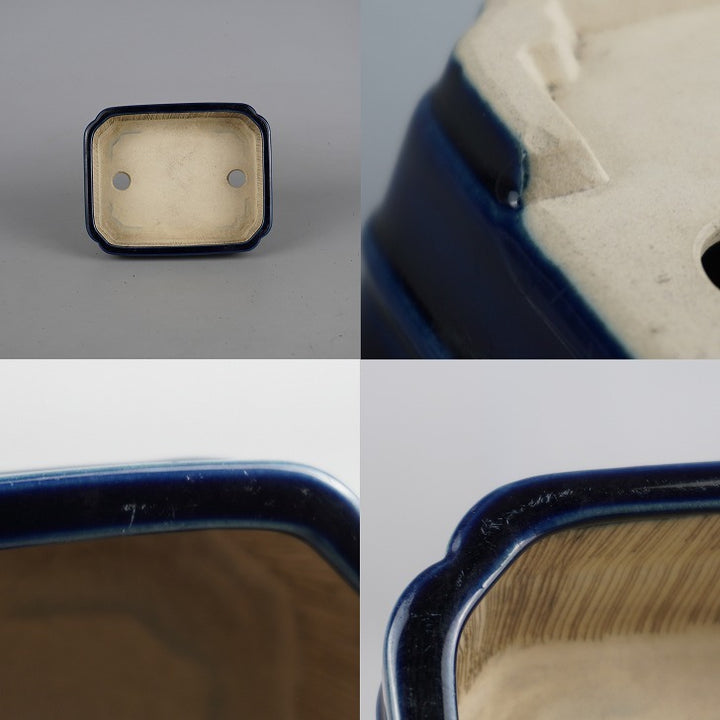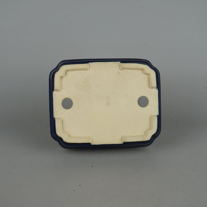 盆栽鉢 青香 小型 長辺 約14.8cm 長方鉢 隅入 中帯 釉薬 t1198406834