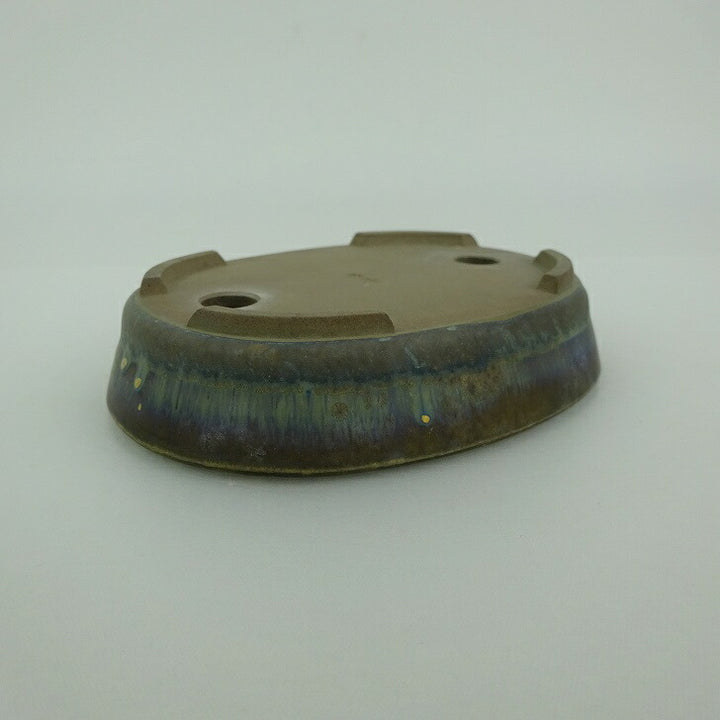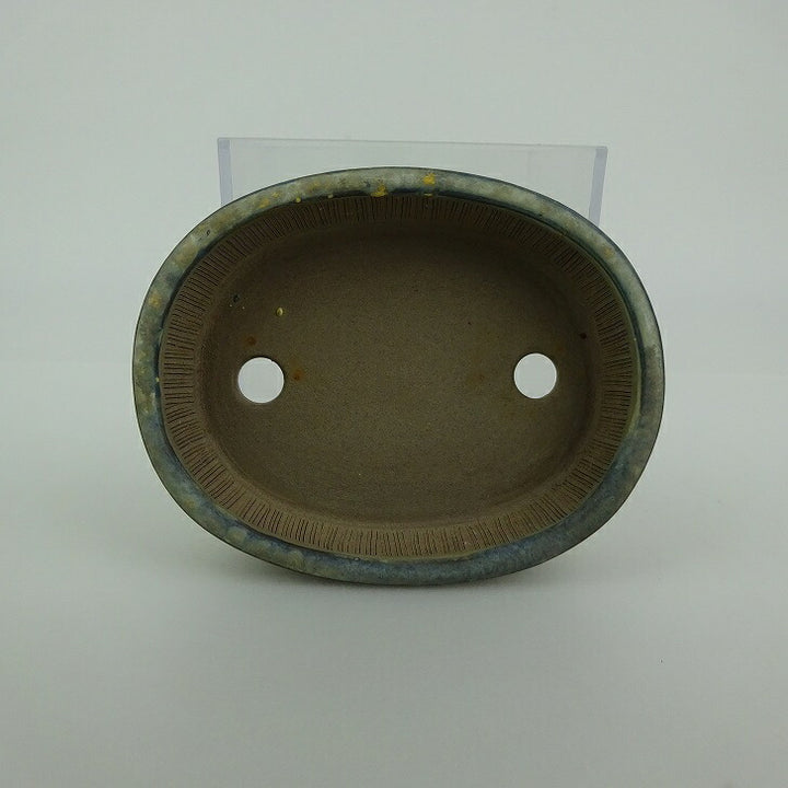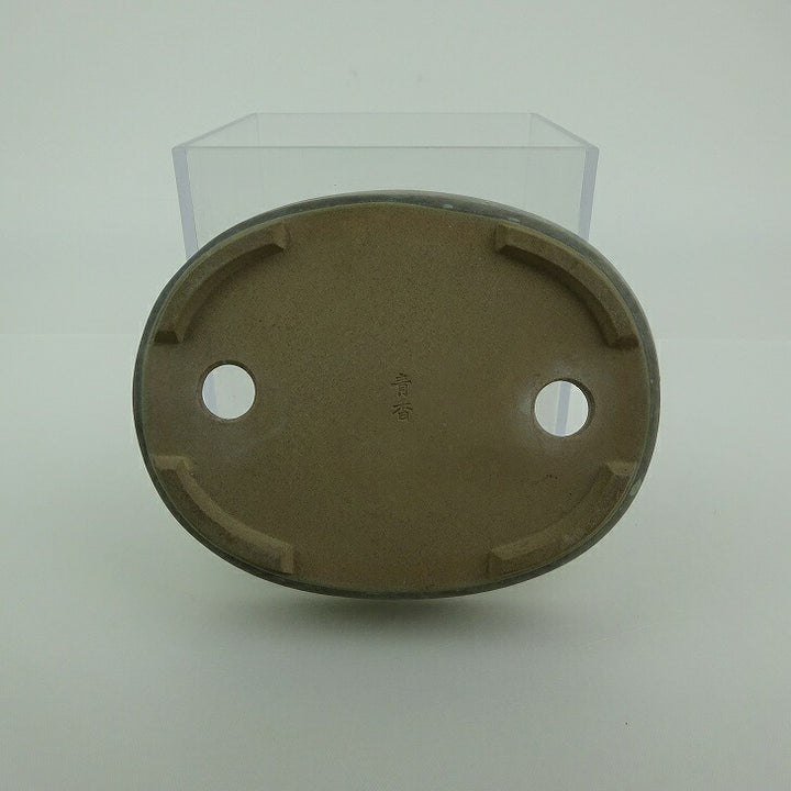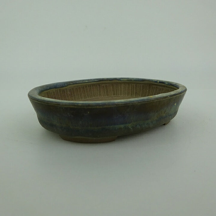 盆栽鉢 青香 小型 長辺 約9.8cm 楕円鉢 釉薬 p1198417518