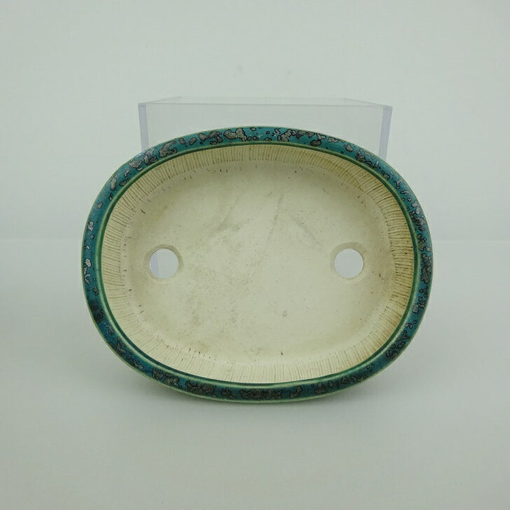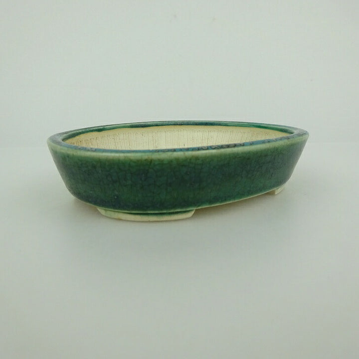 盆栽鉢 青香 小鉢 長辺 約10cm 楕円鉢 釉薬 b1198425303