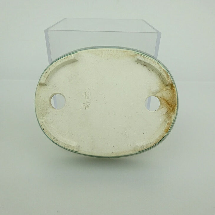 盆栽鉢 青香 小鉢 長辺 約 10cm 楕円 鉢 釉薬 現品 品名青香...