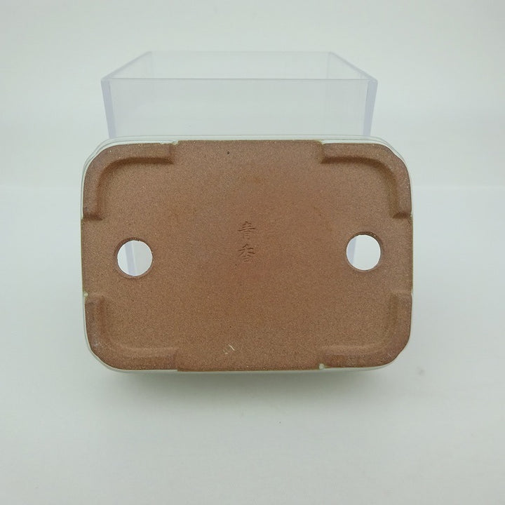 盆栽鉢 青香 小鉢 長辺 約 9.4cm 長方 鉢 中帯 隅入 釉薬 現品 品名青香...