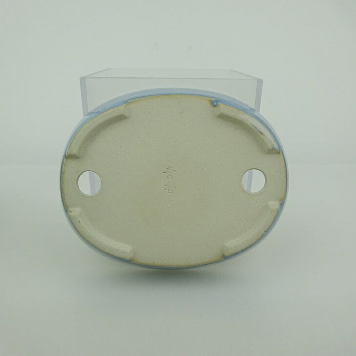 盆栽鉢 青香 小鉢 長辺 約9cm 楕円鉢 釉薬 j1198412636