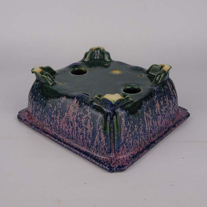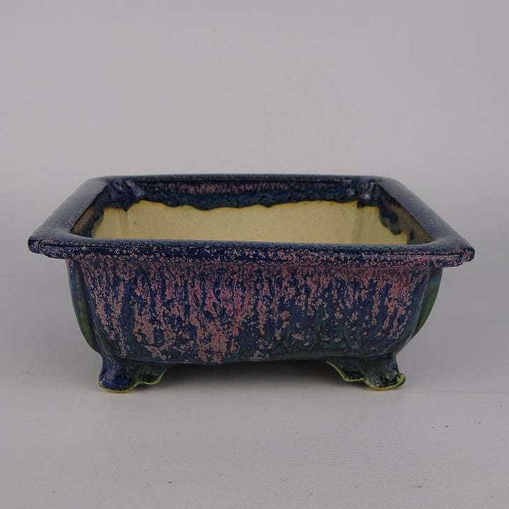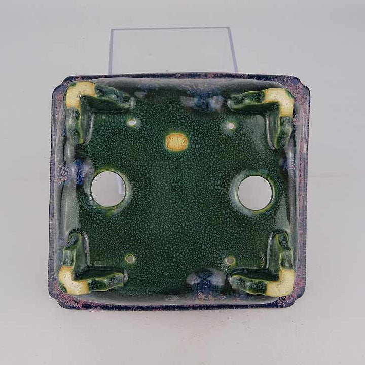盆栽鉢 風香 風香窯 小型 長辺 約14.9cm 長方鉢 外縁 雲足 釉薬 新品 u1198430508