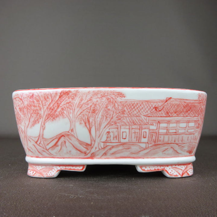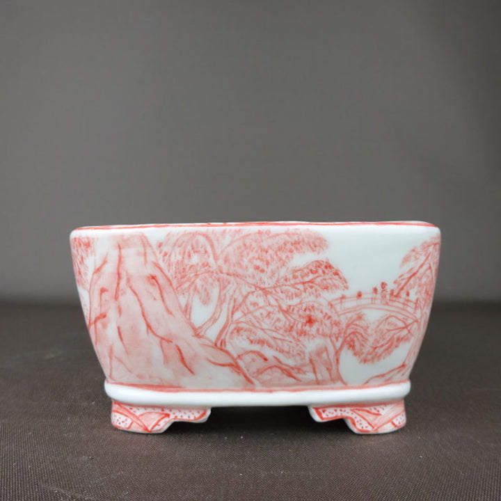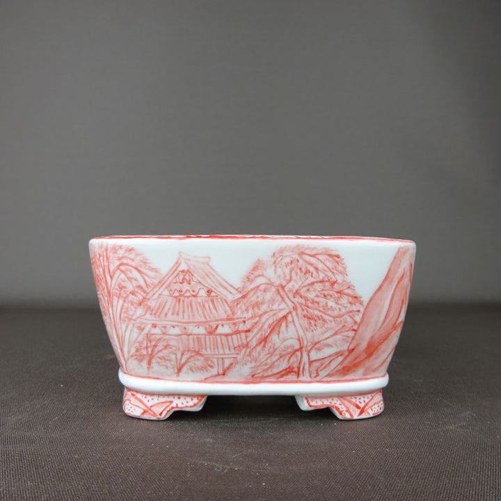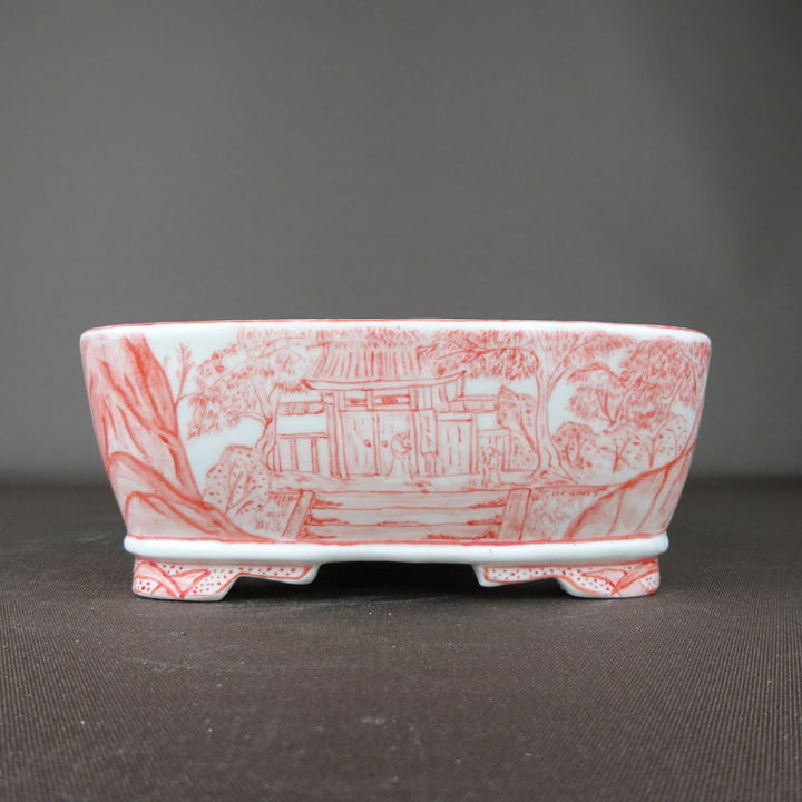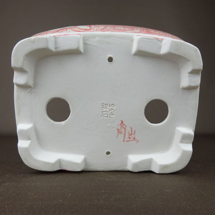 盆栽鉢 高山画 ゆうき祥石ボデー 赤絵 長方鉢 h1198426271