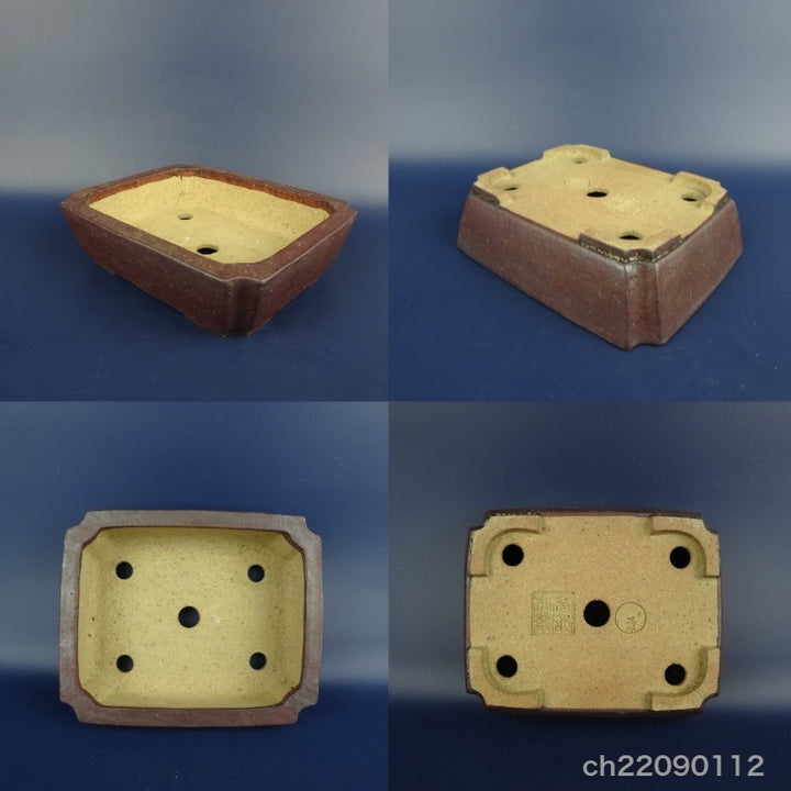 盆栽鉢 高雄香葉 小型丸 長辺 約 14.5cm 長方鉢 切足 隅入 釉薬 観賞用 現品 新品 本名 塩貝研二 1947年生まれ。昭和47年頃より鉢作りを始める。 昭和49年に開窯し、本格的に作陶を開始される。 梨皮などの焼締物も手掛けるが釉薬物中心で、渋い発色の釉薬を目指す。広東釉に定評がある。...