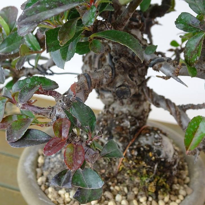 盆栽 ピラカンサ 樹高 約 11cm Pyracantha バラ科 常緑樹 観賞用 小品 現品 ■植物ですので撮影時期や季節によって剪定などの手入れにより写真から変化がございます。撮影日をご確認のうえ、ご注文ください。 【ピラカンサ盆栽】 開花時期は5月~6月頃、小さな5弁の白い花を咲かせます。果実はやや潰れたような球形でをしており、秋頃に色づきます。 ピラカンサにはいくつか種類があり、赤い実や黄色の実、濃い緑色の葉、白やピンクの斑が入るものも...