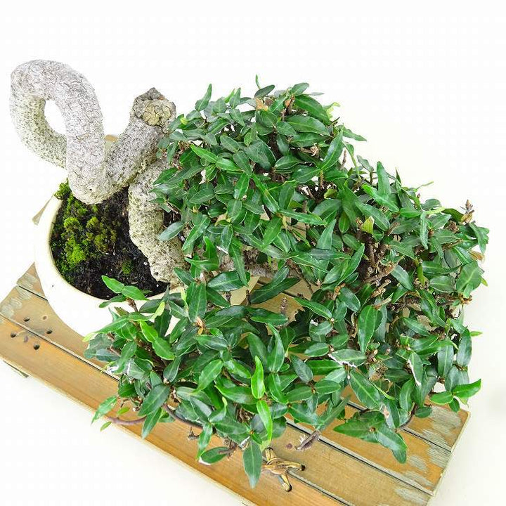 盆栽 縮緬葛 樹高 上下 約14cm ちりめんかずら 高級盆栽 チリメンカズラ テイカカズラ属 つる性 常緑樹 観賞用 小品 m1198407674