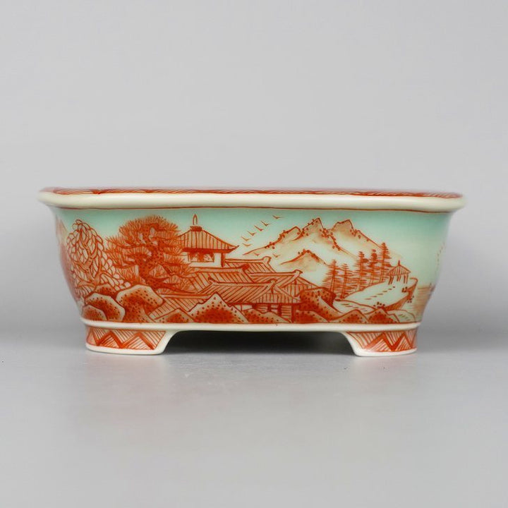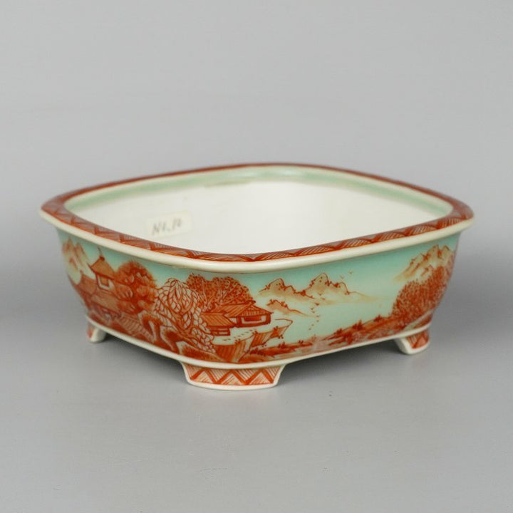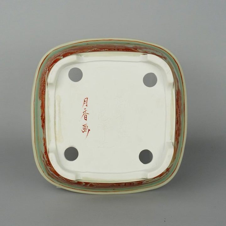 高濱窯 屯洋造 月香画 赤絵 山水画 外縁 撫角 正方鉢 観賞用 盆栽鉢 新品 e1198414013