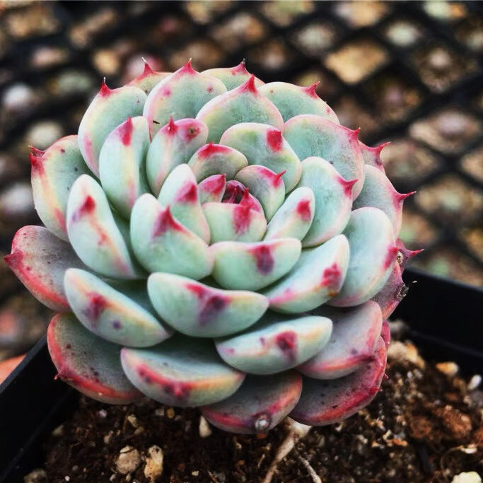 若桃是景天科擬石蓮花屬中廣受歡迎的經典品種。它屬於中小型多肉植物,以其強健的生命力和相對容易照料的特性著稱。此品種生長習性良好,易於在基部萌發側芽,形成緊湊的群生狀態,非常適合單獨盆栽觀賞的優良素材。作為園藝雜交品種,若桃展現了擬石蓮花屬典型的蓮座狀生長形態,是初學者入門的實用選擇。