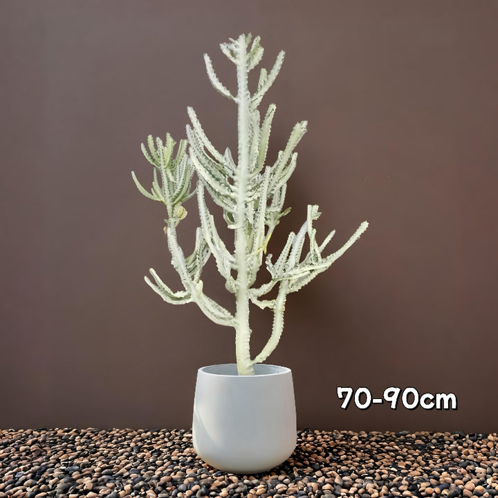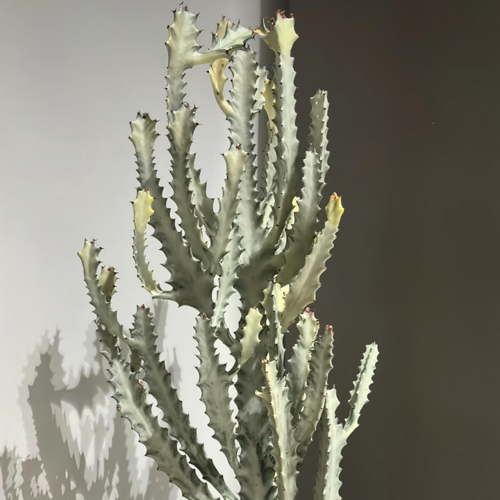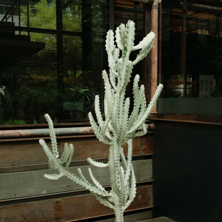 又名三角大戟或非洲牛奶樹,是一種多肉植物,以其直立的三角莖幹和低維護特性聞名。它的汁液含有毒性(接觸皮膚可能引起刺激),但室內養護得當可長成壯觀的裝飾植物