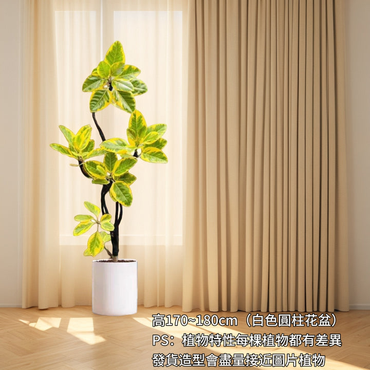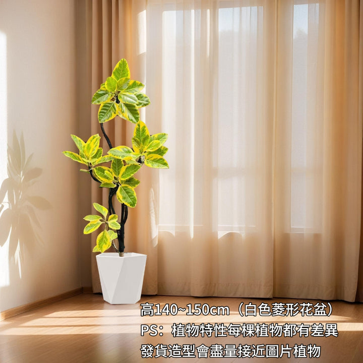 黃金榕屬桑科榕屬,其葉片呈革質金黃色,在充足光照下色澤更加明亮。枝條柔韌且生長迅速,通過專業的蟠紮整形技術可塑造出曲幹、臨水、叢林等多種藝術造型,展現立體的東方美學意境。造型植株既能作為空間點睛之筆,又具備淨化空氣的生態功能,是融合自然雅趣與生活美學的經典盆栽選擇。