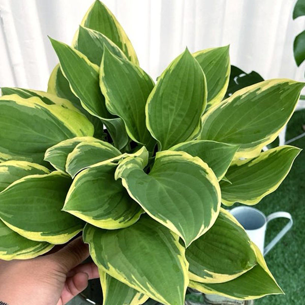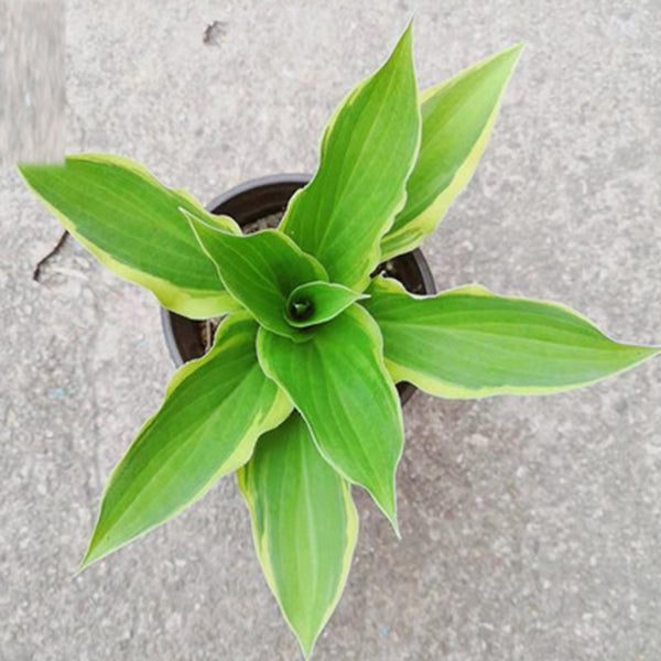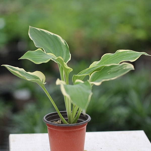 -Hosta 'Sharp shooter' is a perennial root plant in the liliaceae family.