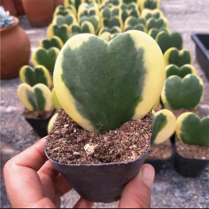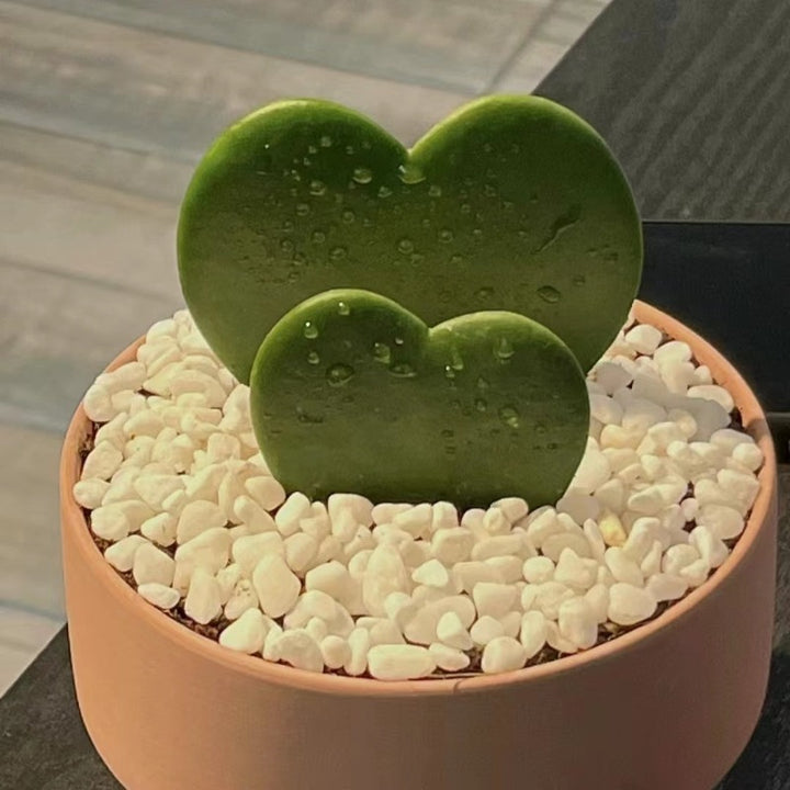 心葉毬蘭是蘿藦科毬蘭屬的可愛品種,以其心形的厚實葉片著稱。單片葉子就能呈現完整的心形輪廓,表面帶有蠟質光澤,在適宜環境下葉緣會泛出淡淡的紅暈。適合用迷你盆栽栽培,作為浪漫禮物或案頭小植,象徵溫暖心意。