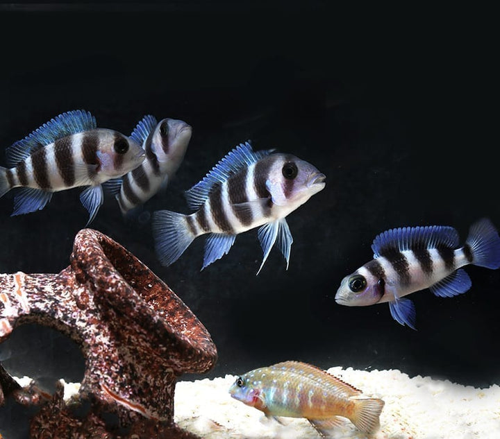 布隆迪六間,鼎鼎大名的坦幹伊克湖代表魚種。俗稱皇冠六間。是發現最早、飼養最為廣泛的六間,主產於布隆迪境內,它的特徵是黑白間對比分明,狀態好時臉頰、胸鰭、腹鰭、臀鰭全是藍色,尾鰭的後半部也是藍色的,背鰭的外部邊緣是藍色,邊緣內是淺黃色。