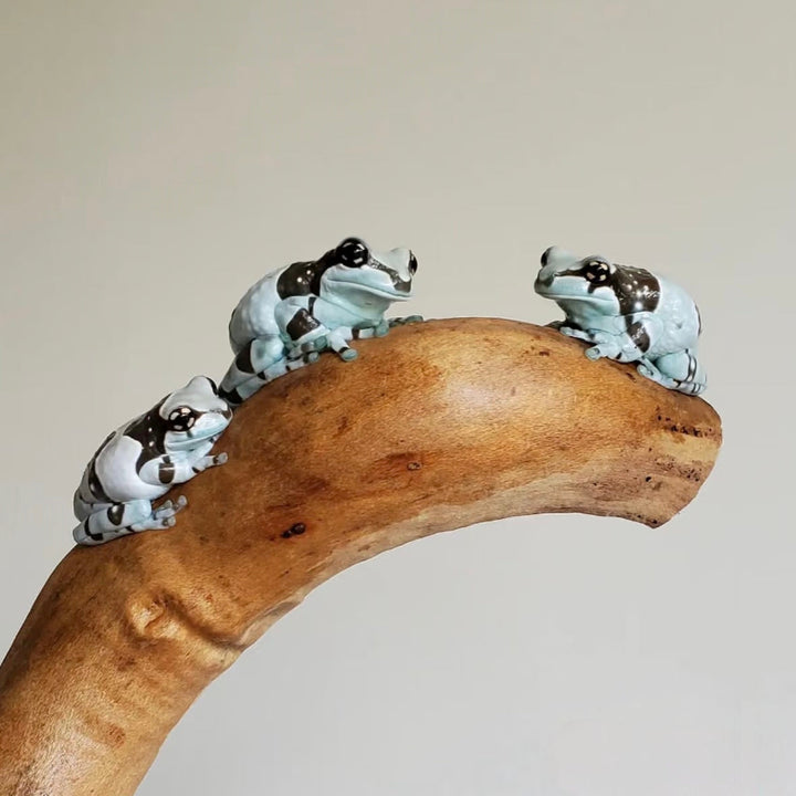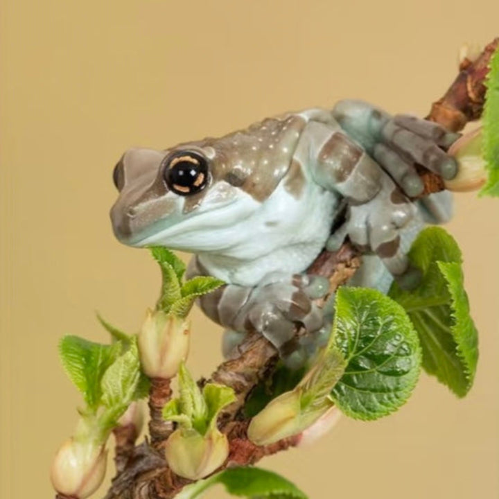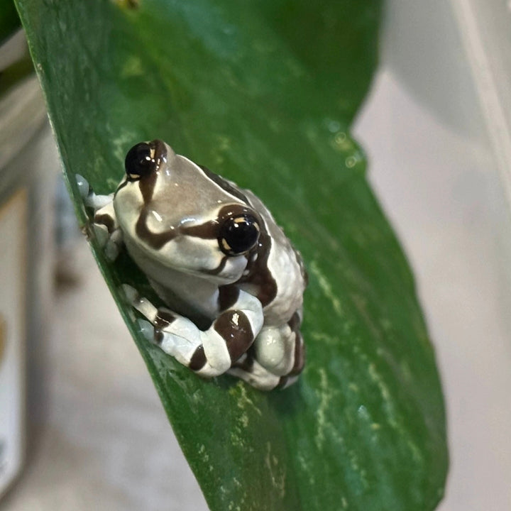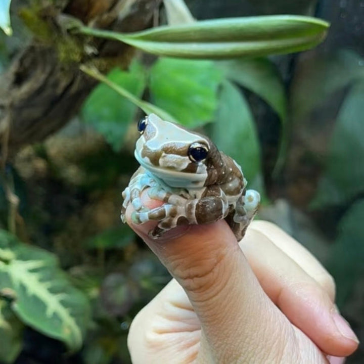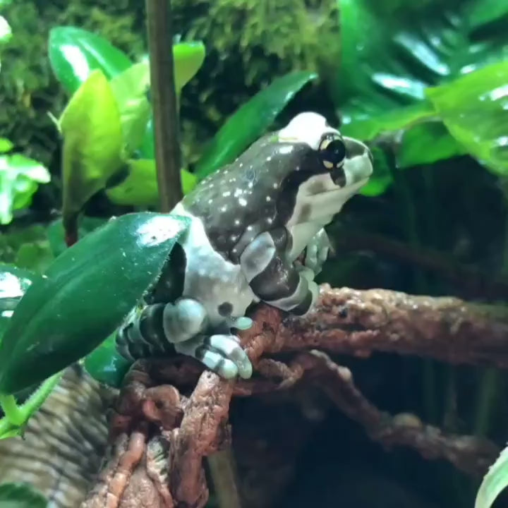 牛奶樹蛙是棲息於南美洲熱帶雨林的大型樹蛙,擁有獨特的棕白迷彩保護色在樹蛙中極為罕見,夜行性的牠們偏好棲息於樹幹或樹洞,而非葉片上,在受威脅時分泌乳白色微毒液體自衛,因而得名。食性廣泛,能吞食蟋蟀、麵包蟲等活餌,性格活潑且適應力強,壽命可達10-15年,是可以長期陪伴的寵物首選之一。