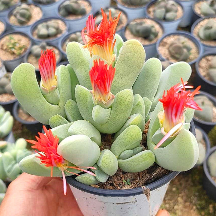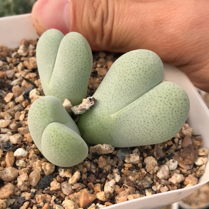 神風玉是番杏科蝦鉗花屬的多年生肉質植物,其在多肉植物分類中地位顯著,被視為蝦鉗花屬的代表物種之一,重要性僅次於肉錐花屬和生石花屬。該物種具有獨特的生理節律:夏季深度休眠,生長季集中於春、秋、冬三季;每年經歷長達數月的脫皮期,老葉養分逐漸轉移至新葉,因其對環境變化敏感,栽培需精細調控,適合追求挑戰的進階愛好者。