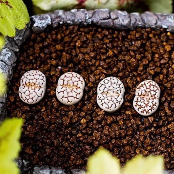 大理石壽麗玉生石花是生石花屬中備受推崇的品系,它擁有驚人的擬態天賦,能完美融入周遭礫石環境,有效躲避啃食。作為多年生多肉植物,其生命週期獨特而緩慢,每年會經歷蛻皮過程,新葉從內部長出並取代老葉,完成自我更新。此品種以其卓越的耐旱性著稱,根部系統能深入地下尋找水分,葉片則演化出特殊儲水組織以應對漫長旱季。因其獨特的紋理變異性與稀有性,在生石花愛好者與收藏家間享有極高聲譽,是追求品系特色與挑戰性栽培的進階玩家首選。