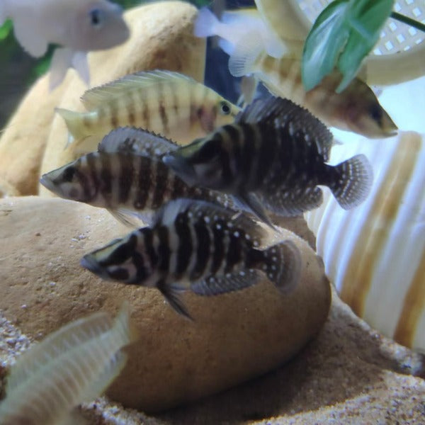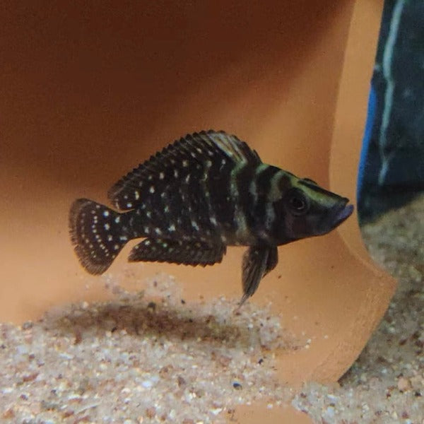 黑噴虎來自東非坦幹伊喀湖,是的深受水族愛好者喜愛的慈鯛。他們的體型也很薄,和金頭虎相比,體型更修長,性格也更強硬,同樣是從狹窄的縫隙中潛伏進出,掠食小蝦和魚。