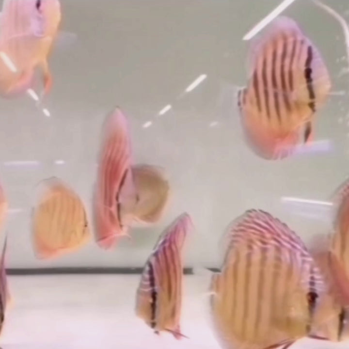 阿蓮卡七彩神仙係神仙魚裏面比較原始嘅品種,經過繁育,呈現咗好多唔同嘅顏色表現。其中,黃阿蓮卡以其獨特魅力備受注目。佢底色係淺黃色至深黃,身上有清晰嘅豎條紋,頭部同上下魚鰭又點綴咗藍白色嘅條紋,整體睇落嚟金黃典雅,好似藝術品。