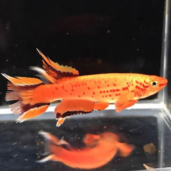 黃金火焰鳉其橘黃偏紅的體色搭配上同色系胸鰭,橘色偏褐色的背鰭、臀鰭與尾鰭,十分搶眼。性情羞怯,對於生存環境的要求並不苛刻,但若水質變動過大仍會使它死亡。對於食物更是不挑剔,從活餌到顆粒、薄片,只要能吃皆來者不拒。