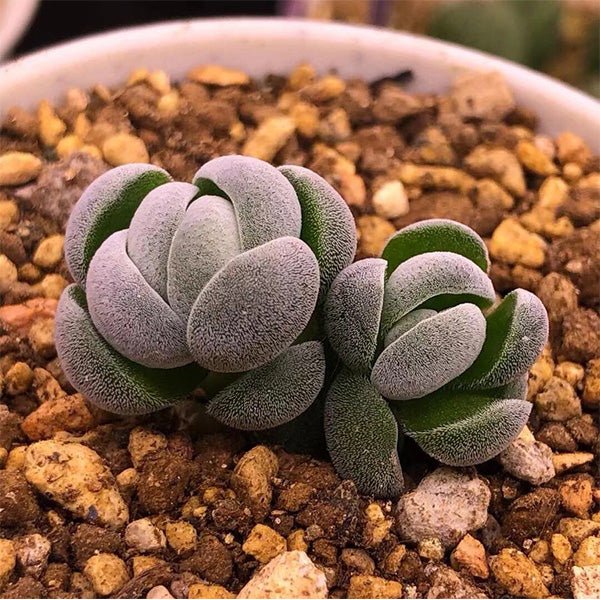 托尼多肉植物是景天科青鎖龍屬的珍稀品種,以其獨特的石灰白色稜柱狀葉片著稱。葉片緊密十字對生排列,表面覆有特殊的白色粉狀保護層,在適當光照下會呈現淡雅粉暈。植株生長緩慢,隨著時間會逐漸形成微型灌木狀的獨特形態。