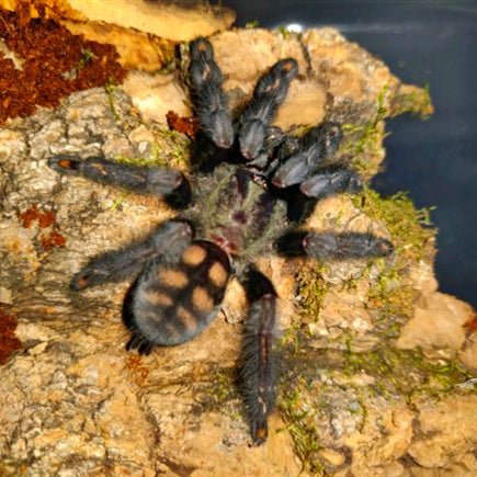 原產於委內瑞拉東部熱帶雨林,一個非常醒目的經典的樹棲型寵物捕鳥蛛種類,身體為較深的墨綠色,腳上有橘紅色花紋,腹部上有更為明顯的“老虎斑紋”。