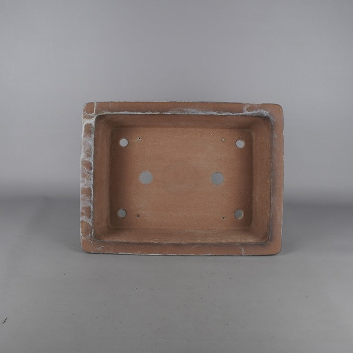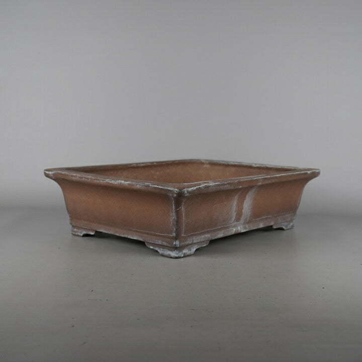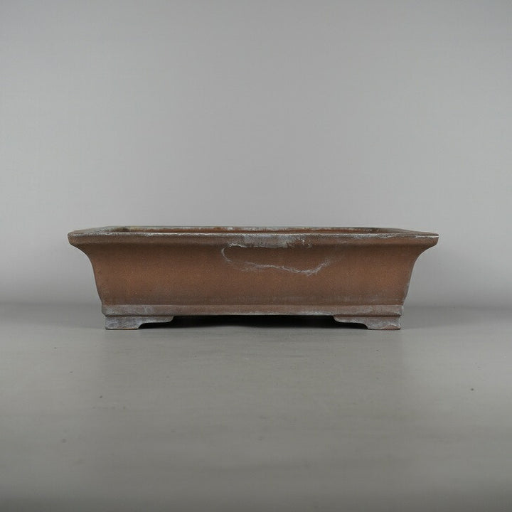 中古盆栽鉢 三峰 中型 長辺 約 39cm 長方鉢 外縁 下帯 泥物 中古鉢 m1198411758