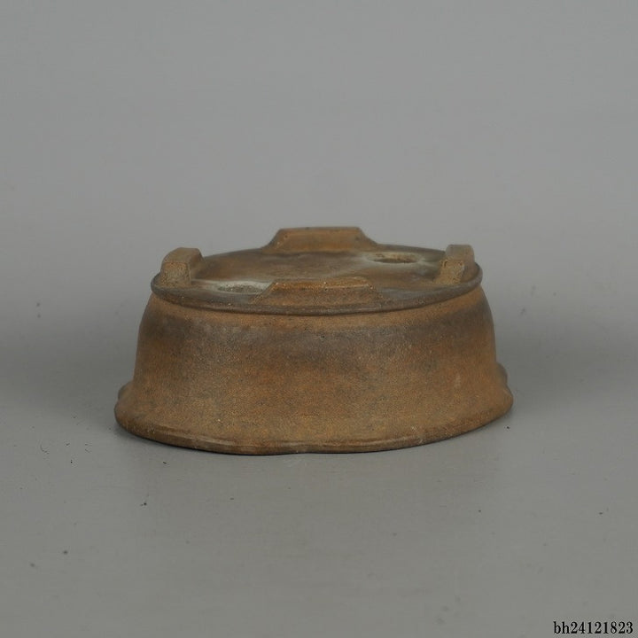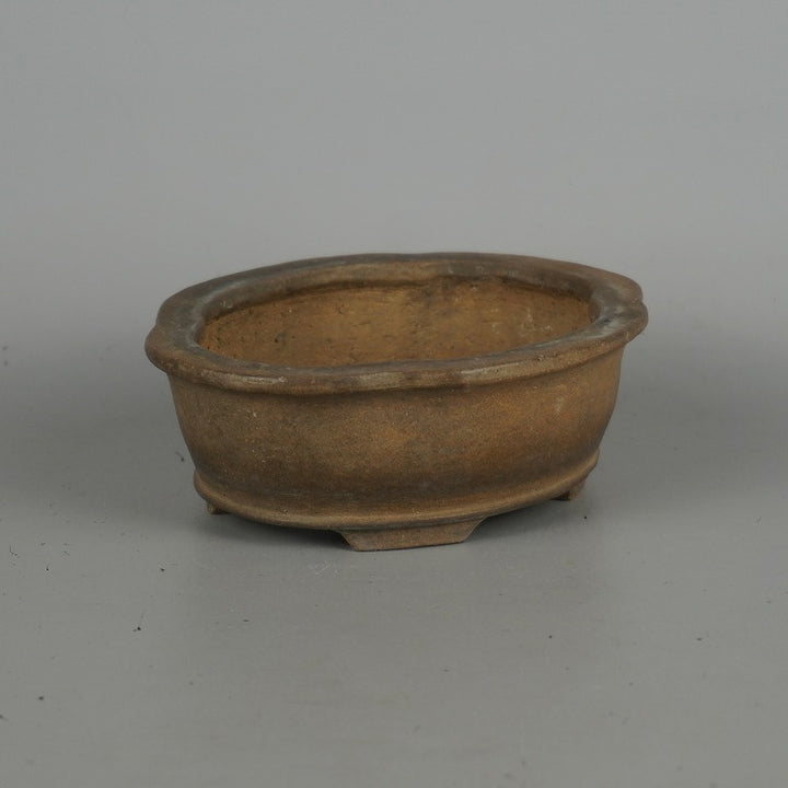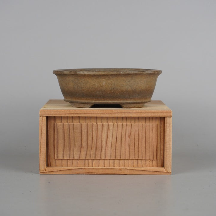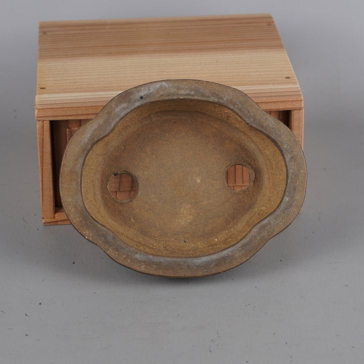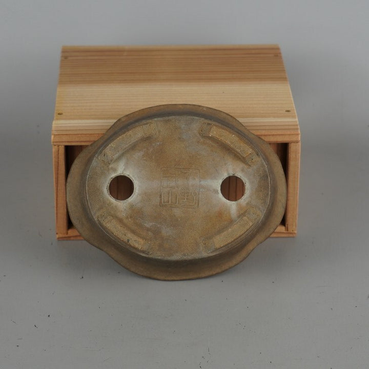 盆栽鉢 下野 武山 小型 長辺 約12.7cm 木瓜鉢 外縁 下帯 泥物 箱付 観賞用 現品 中古鉢 品名下野武山(箱付)...