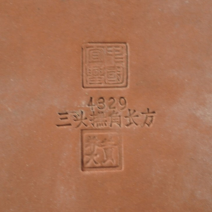 中古盆栽鉢 中国宜興 他 4329 中型 長辺 約 22cm 長方鉢 撫角 泥物 中古鉢 l1201117341