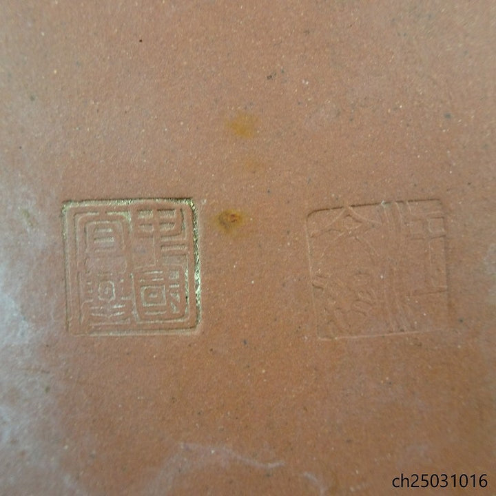 中古盆栽鉢 中国宜興 落款あり 65-3 中型 長辺 約26.9cm 長方鉢 外縁 泥鉢 中国鉢 中古鉢 s1198413832