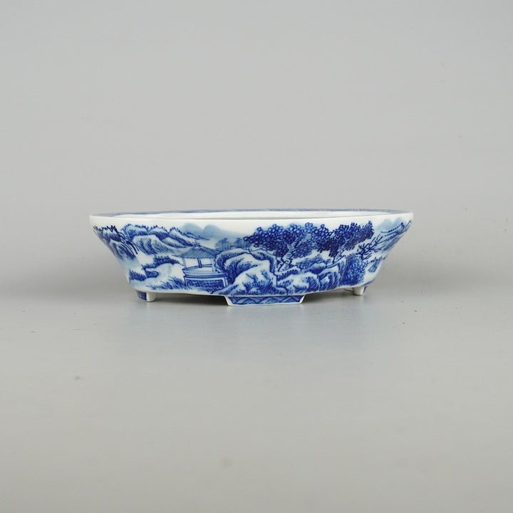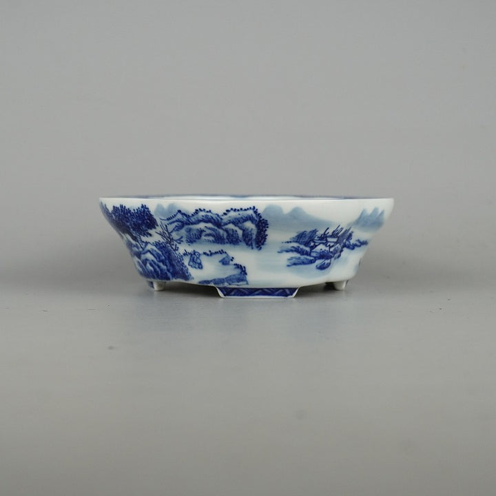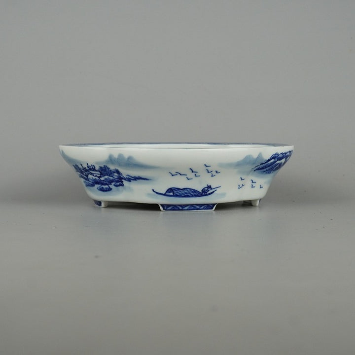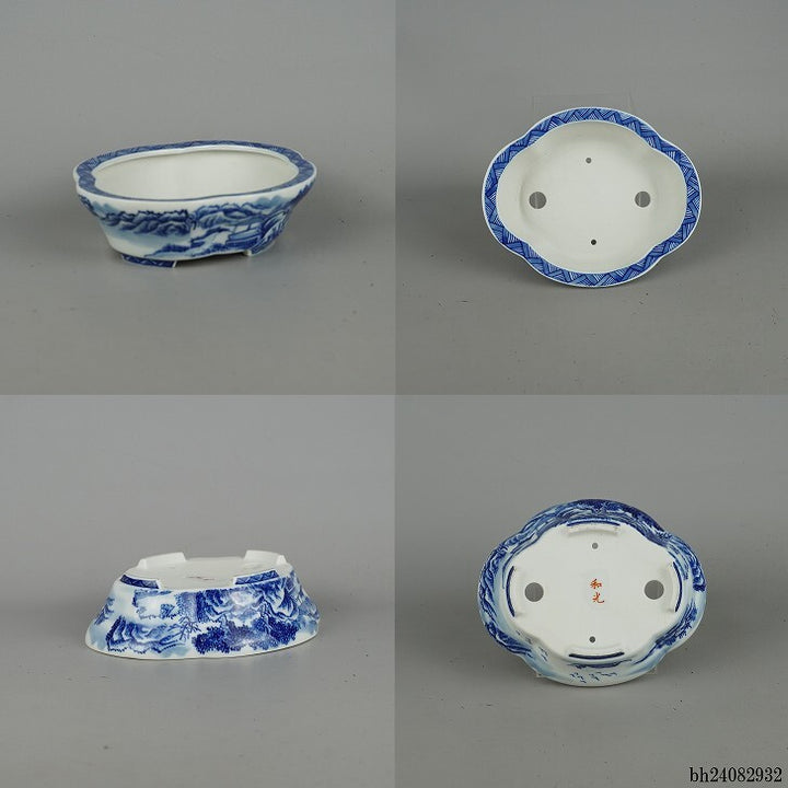 盆栽鉢 和光 小型 長辺 約16.8cm 木瓜鉢 山水図 中国鉢 観賞用 現品 中古鉢 品名和光...