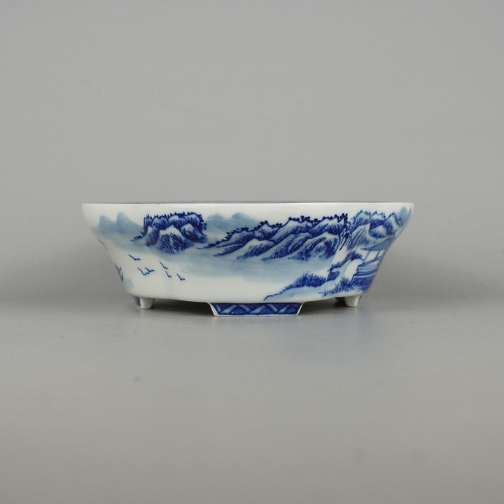 中古盆栽鉢 和光 小型 長辺 約16.8cm 木瓜鉢 山水図 中国鉢 観賞用 中古鉢 n1198411219