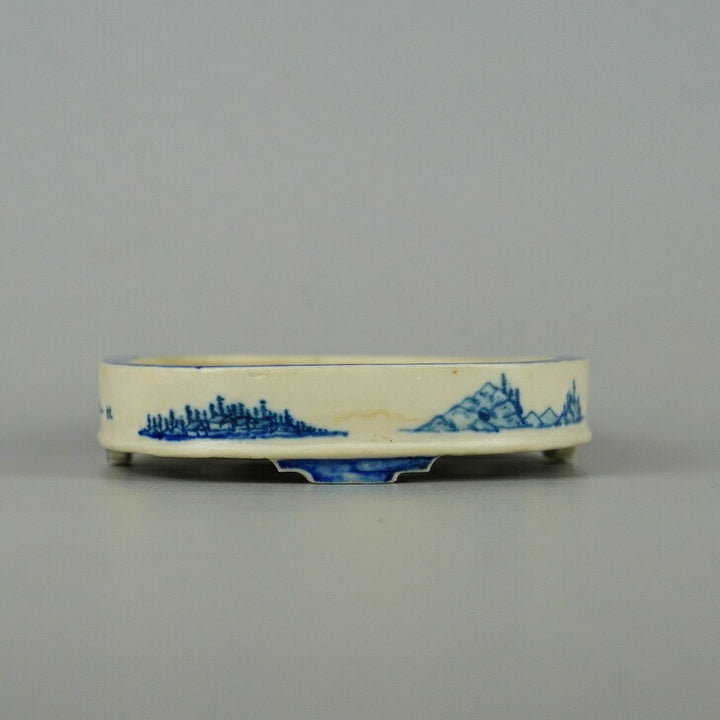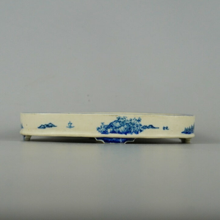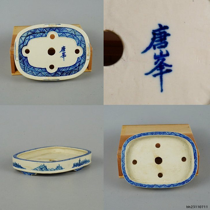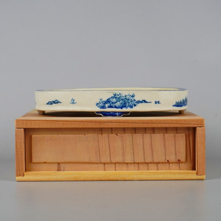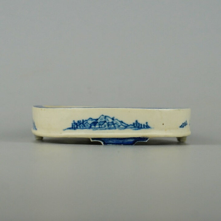 盆栽鉢 唐峯 小型 長辺 約13.8cm 楕円鉢 染付 山水図 箱付 現品 中古鉢 商 品 名唐峯 (箱付) サ イ ズ高さ 約2.3センチ...