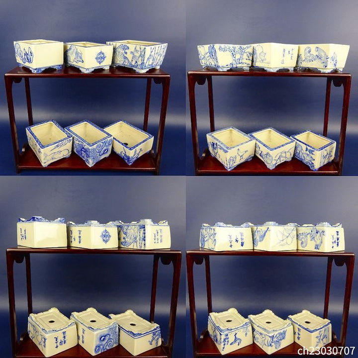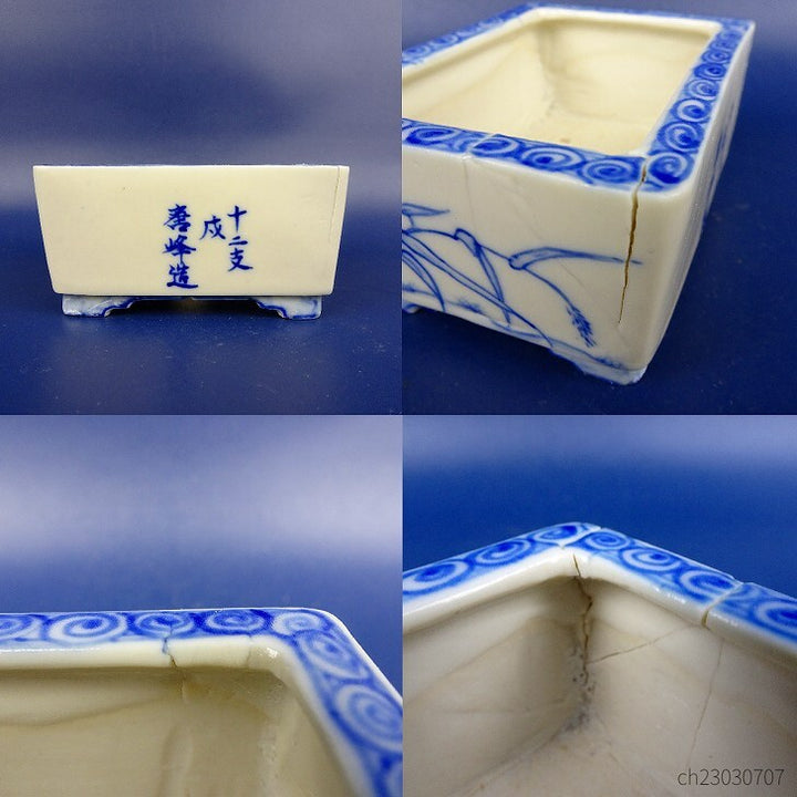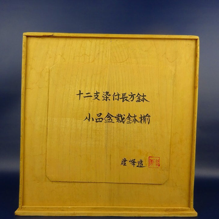 【中古】盆栽鉢 唐峰造 染付 小鉢 長辺 約9cm 長方鉢 十二支 干支 12個セット 現品 中古鉢 送料無料 唐峰 本名:嶌田修二 第17回現代小鉢作家展 全日本小鉢盆栽協会理事長賞釉薬の部において金賞受賞...