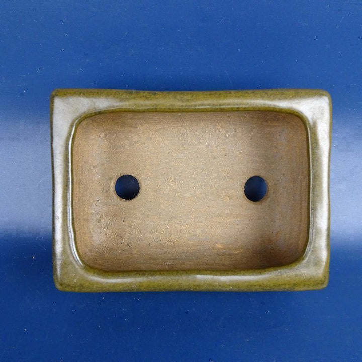 【中古】盆栽鉢 夢寿蔵 小鉢 長辺 約11cm 長方鉢 切足 釉薬 現品 中古鉢 品名夢寿蔵 サイズ高さ 約4センチ...