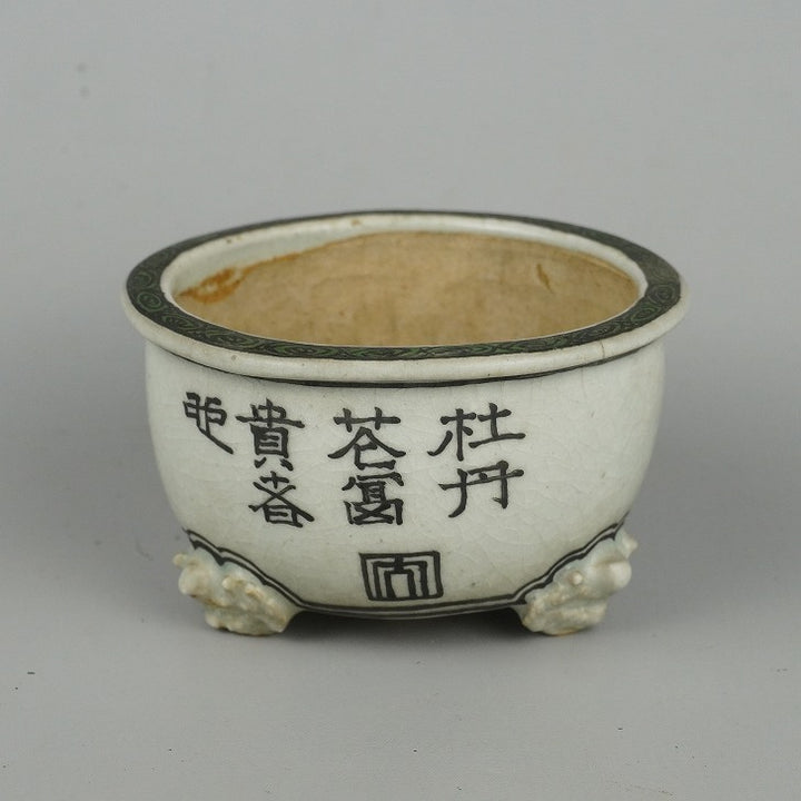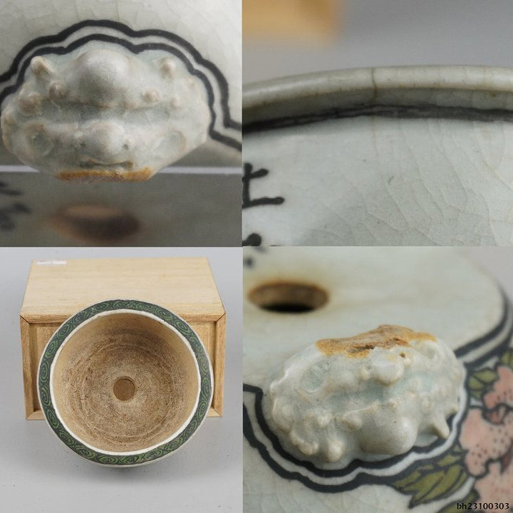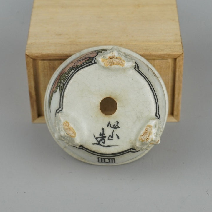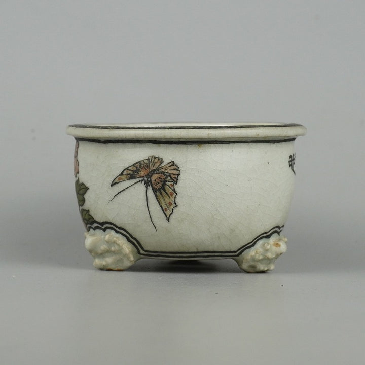 盆栽鉢 大助 心山造 小鉢 長辺 約9cm 丸鉢 色絵 牡丹 蝶 ボタン 花 チョウ 観賞用 現品 中古鉢 品 名大助 心山 (箱付) サイズ高さ 約5.3センチ...