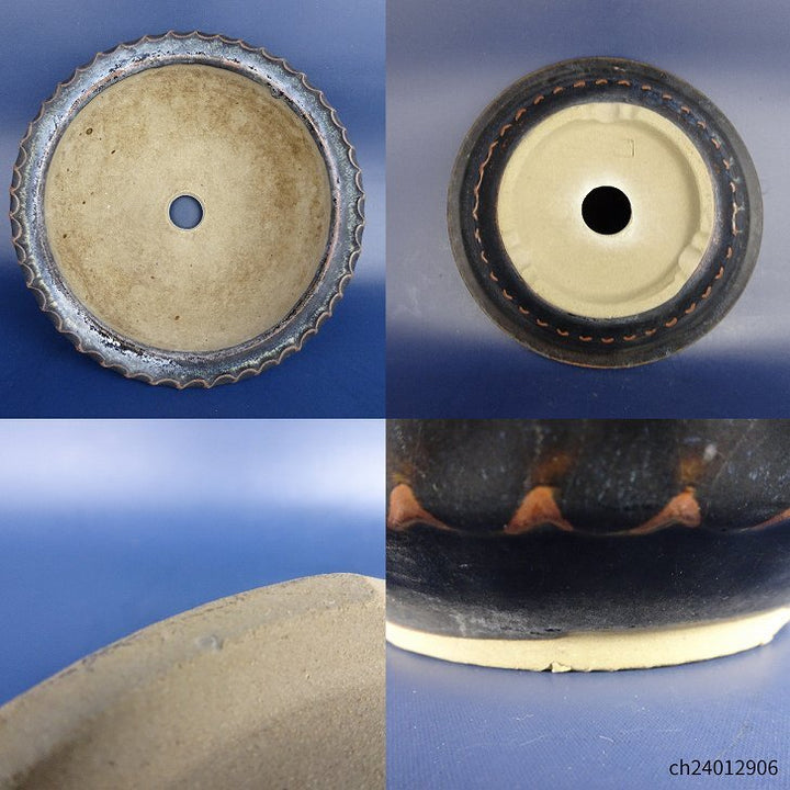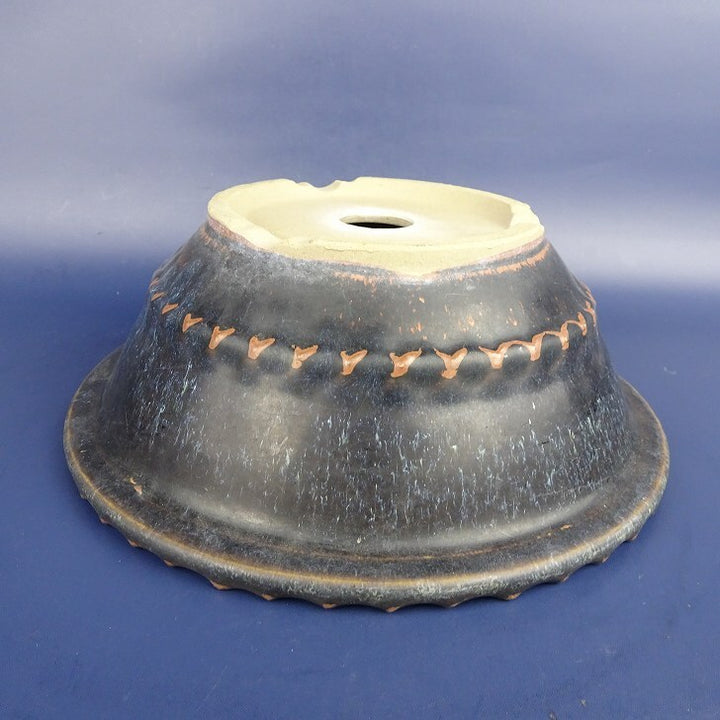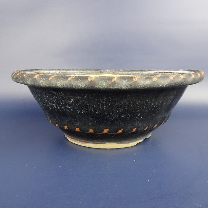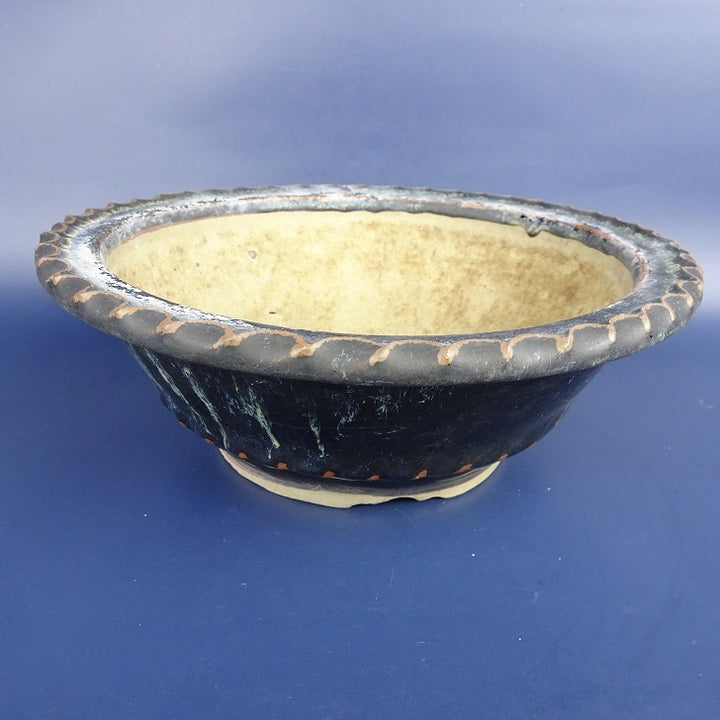 中古盆栽鉢 小石原焼 中型 長辺 約21cm 丸鉢 外縁 釉薬 中古鉢 f1198407148