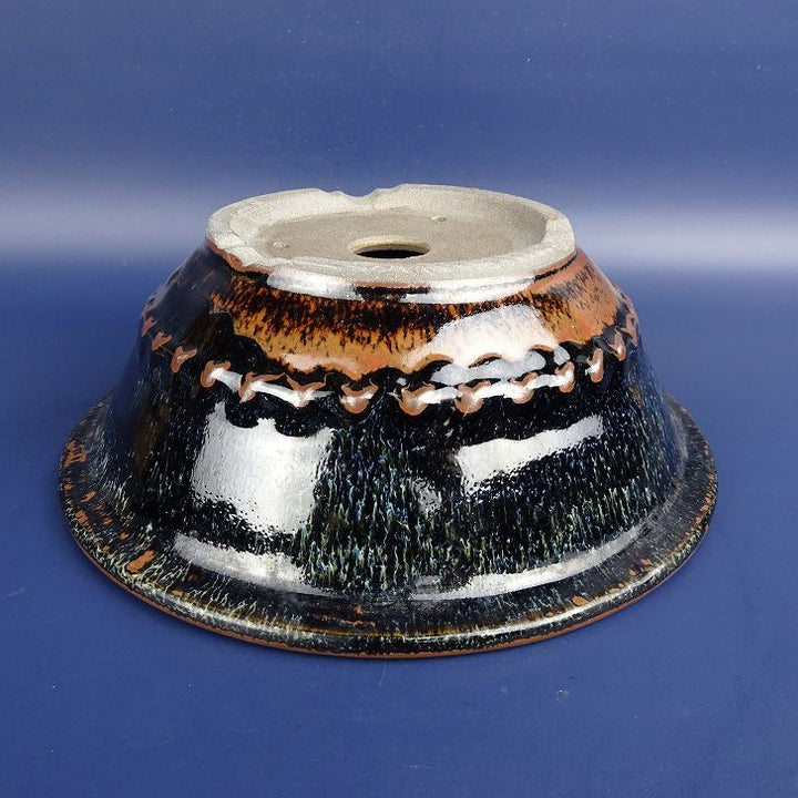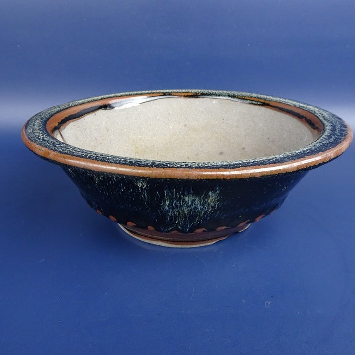 中古盆栽鉢 小石原焼 落款なし 中型 長辺 約20.5cm 丸鉢 外縁 釉薬 中古鉢 j1198415721