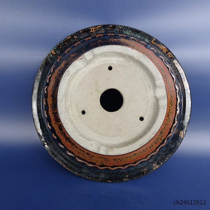 【中古】盆栽鉢 小石原焼 落款なし 中型 長辺 約20.5cm 丸鉢 外縁 釉薬 現品 中古鉢 品名小石原焼(落款なし)...