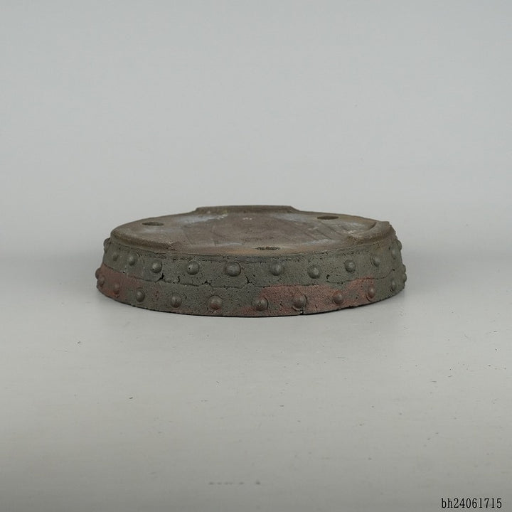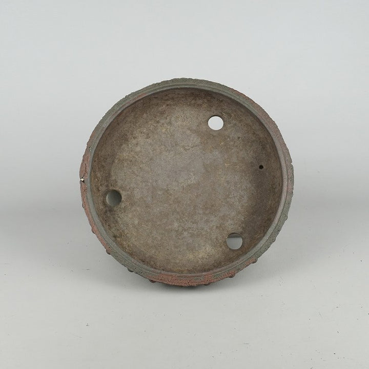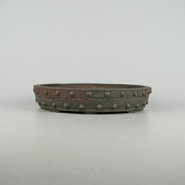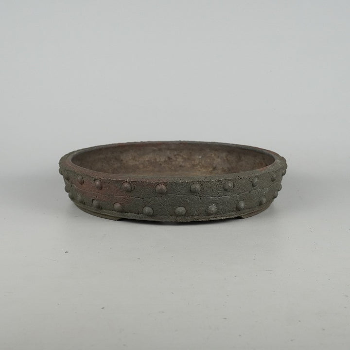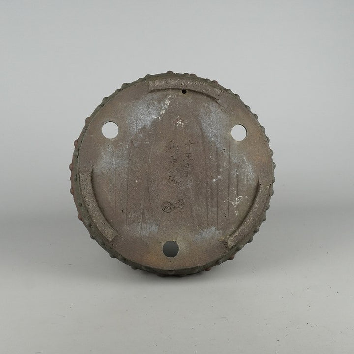 中古盆栽鉢 常滑 十王堂 松泉焼 中型 長辺 約24.3cm 丸鉢 鋲打 泥物 中古鉢 k1198413261