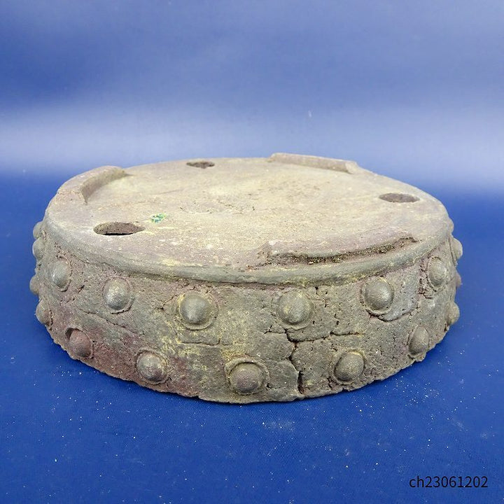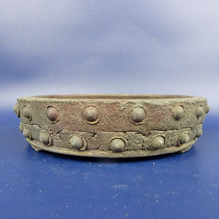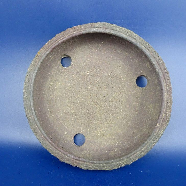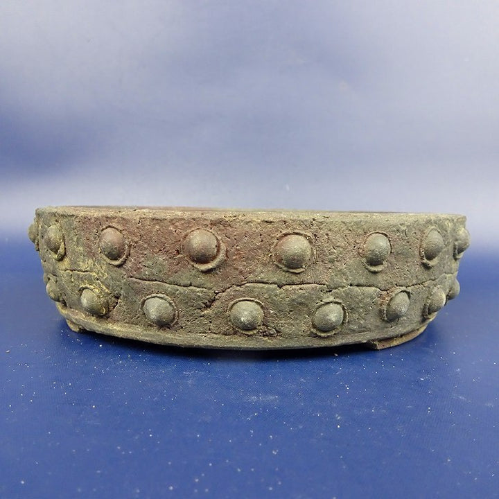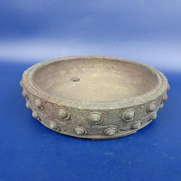 中古盆栽鉢 常滑 十王堂 松泉 小型 長辺 約15cm 丸鉢 鋲打 泥物 中古鉢 q1198416114