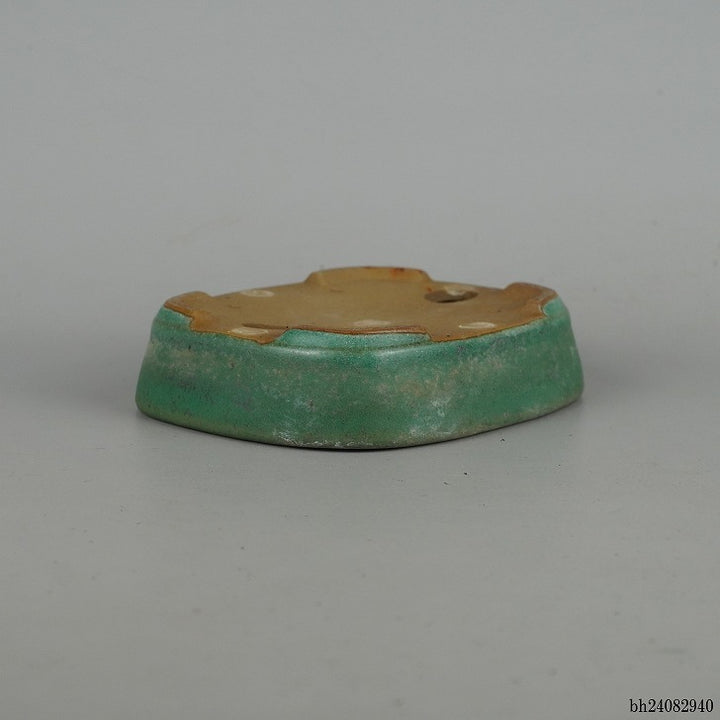 盆栽鉢 常滑 山房小型 長辺 約13.8cm 長方鉢 撫角 釉薬 現品 中古鉢 山房造 山房鯉江製陶所 かつては押型製法による量産タイプが主体の良質で手頃な常滑色鉢として親しまれた。1980年代半ば頃からは仕上げにこだわった高級品を指向し、安定した製品を出している。型は比較的スタンダードなものを中心に釉色、大小を含めると数百種に及ぶ。釉物は瑠璃、均釉、海鼠釉、白釉などがある。 以前は量産タイプには「山房造」、高級指向製品には「山房造鳳舟」、「山房...