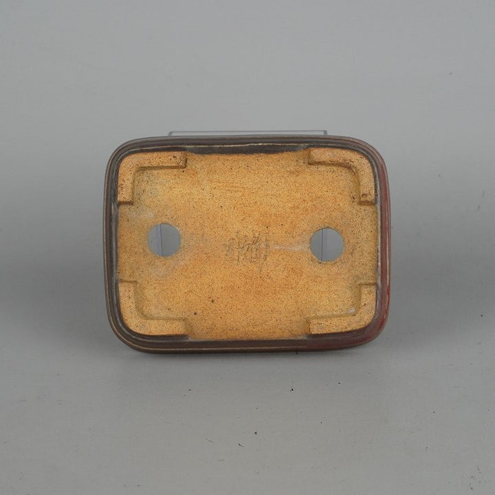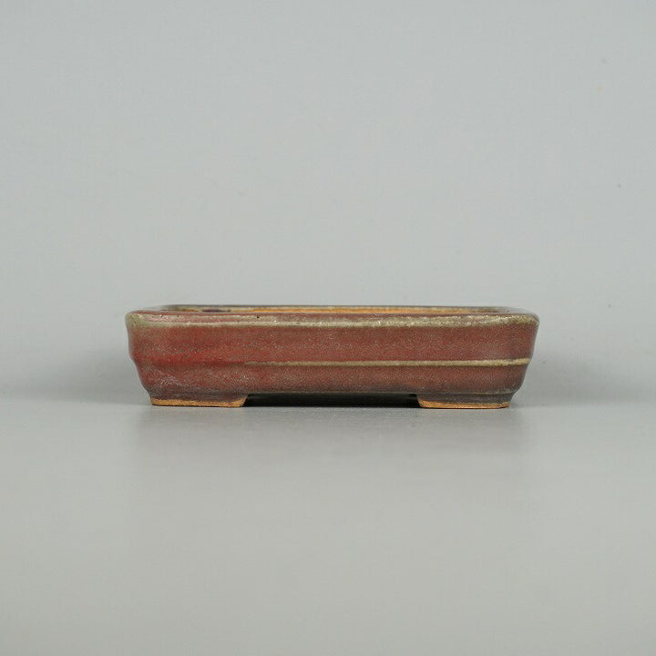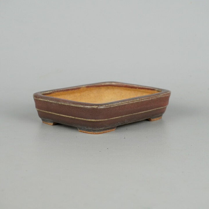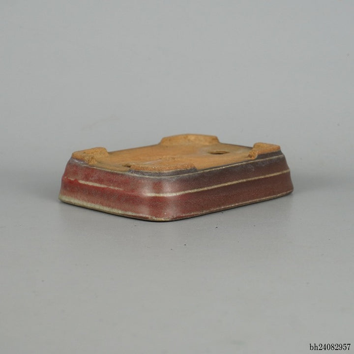 盆栽鉢 常滑 服部 小型 長辺 約13.3cm 長方鉢 撫角 中帯 釉薬 現品 中古鉢 品名服部...