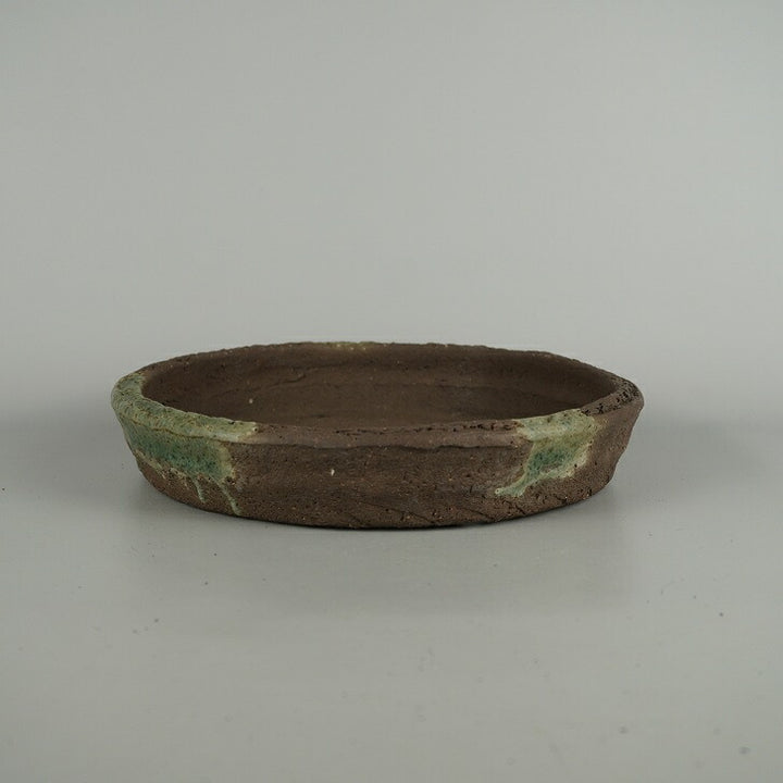 中古盆栽鉢 常滑 竜岳 中型 長辺 約 25.2cm 丸鉢 泥物 中古鉢 x1201985993