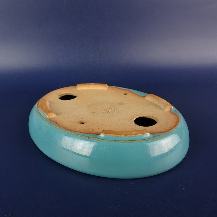 中古盆栽鉢 常滑 美芸 小型 長辺 約 12.7cm 楕円鉢 釉薬 中古鉢 f1198407992